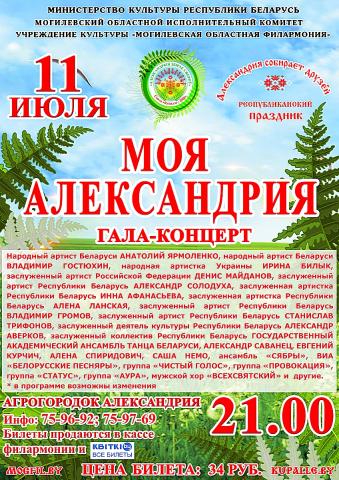 Кульминацией праздника «Купалье» («Александрия собирает друзей») 11 июля станет гала-концерт «Моя Александрия». Об этом сообщили в Могилевской областной филармонии.